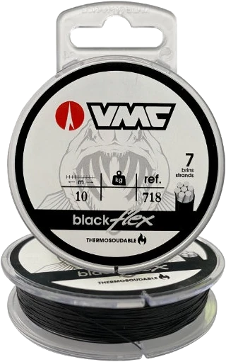 Blackflex besteht aus 7 feinen rostfreien Edelstahlfasern, die von einem unauffälligen Nylon ummantelt sind. Dadurch fransen die Schnitte nicht auf und es lässt sich leicht mit Klemmhülsen verarbeiten oder verschweißen, indem man die Schlaufen verdrillt und mit einem Feuerzeug erhitzt. Blackflex ist ein ideales halbsteifes Vorfachmaterial zum Herstellen von Stingern und Stingersystemen, sowie zum Angeln mit dem Köderfisch.