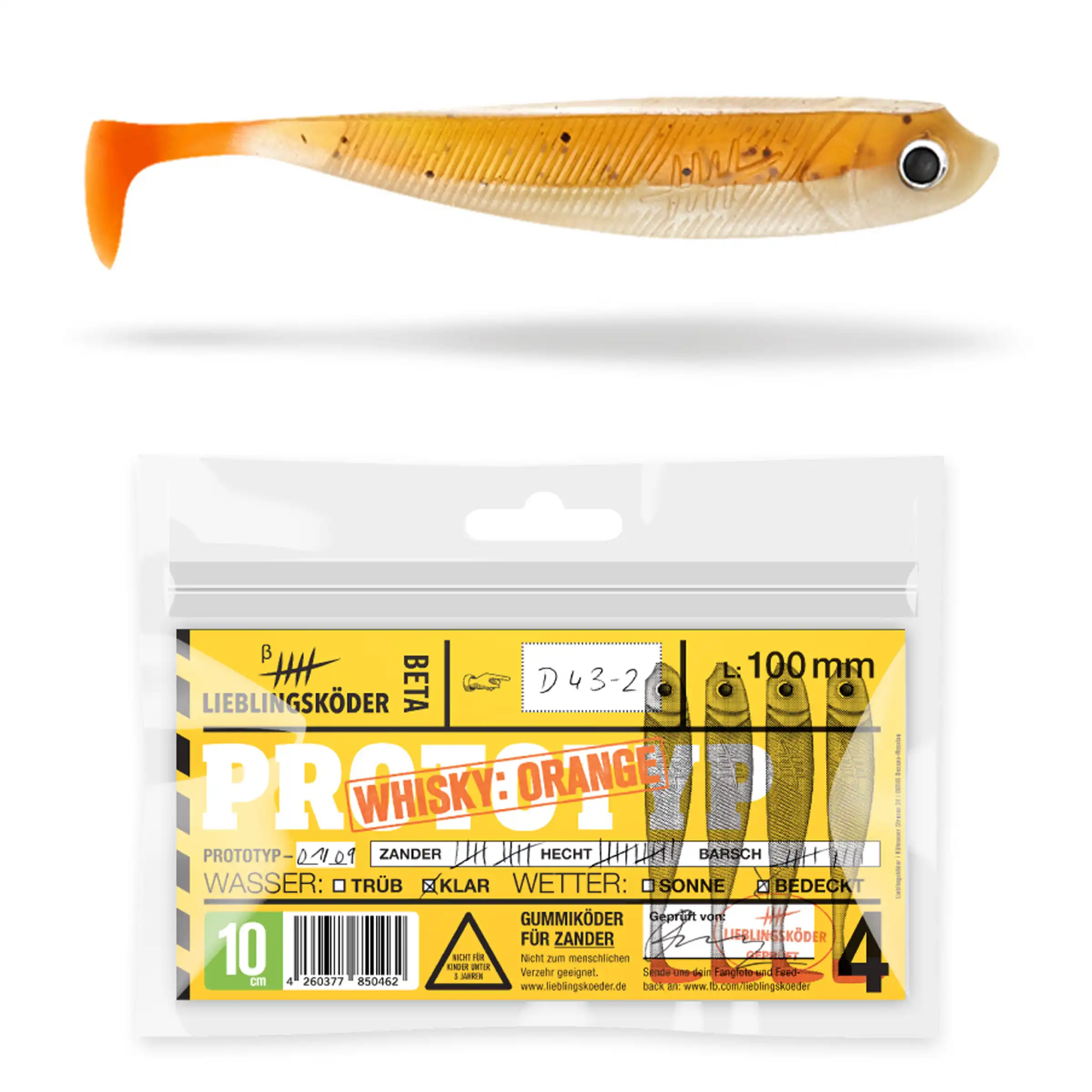 Der Lieblingsköder Sunny ist ein schlanker Gummifisch mit einer Länge von 10 cm. Durch seine weiche Gummimischung ist er ideal geeignet, um auf Zander zu angeln. Aber auch andere Raubfische wie Hechte, Barsche und Rapfen haben ihn zum Fressen gern.