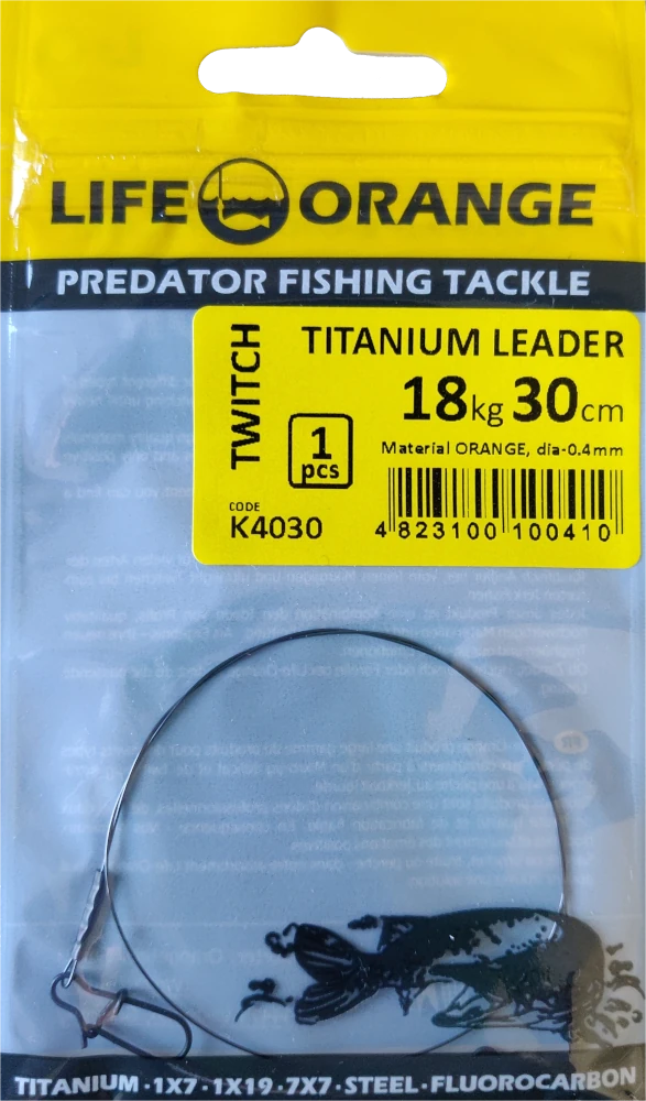 Das Life Orange Titanvorfach ermöglicht eine hohe Belastbarkeit bei kleinem Durchmesser. Es ist mit einer Anti-Korrosionsschicht überzogen und super elastisch. Bei hoher Belastung dehnt sich das Material um 10-15% und kehrt immer wieder in seine Ursprungsform zurück. Ideal für Twitching.
